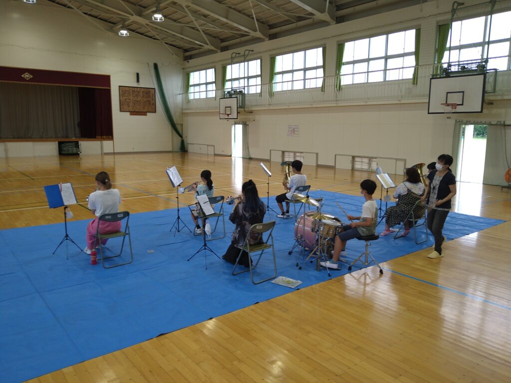 今回は場所が小さいので、ドラムセットなしの管楽合奏での本番になりました。