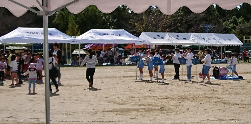 今年も開会式入場行進の先導と、お昼のアトラクションタイムに参加させていただきました。お昼の演奏では、運動会に来ていた子供たちの飛び入り参加のダンスで盛り上がりました。